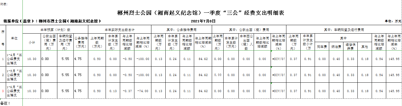 郴州市烈士公园(湘南起义纪念馆)2021年二季度“三公”经费公开