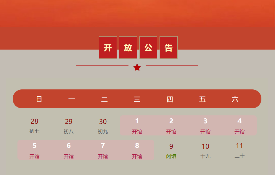 2025年国庆与中秋双节将至,为满足广大群众的参观需求,10月1日至10月8日湘南起义纪念馆、陈家大屋、郴州市生活垃圾分类宣教中心正常对外开放,纪念馆将延时开放至20:00(19:30停止入馆)。同时,我们将新增两个临时展览,欢迎前来参观。